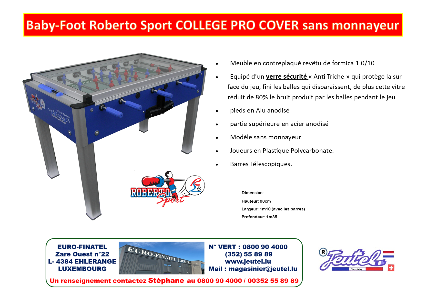 Soyez le premier à laisser votre avis sur “Baby-Foot Roberto COLLEGE PRO COVER sans monnayeur”