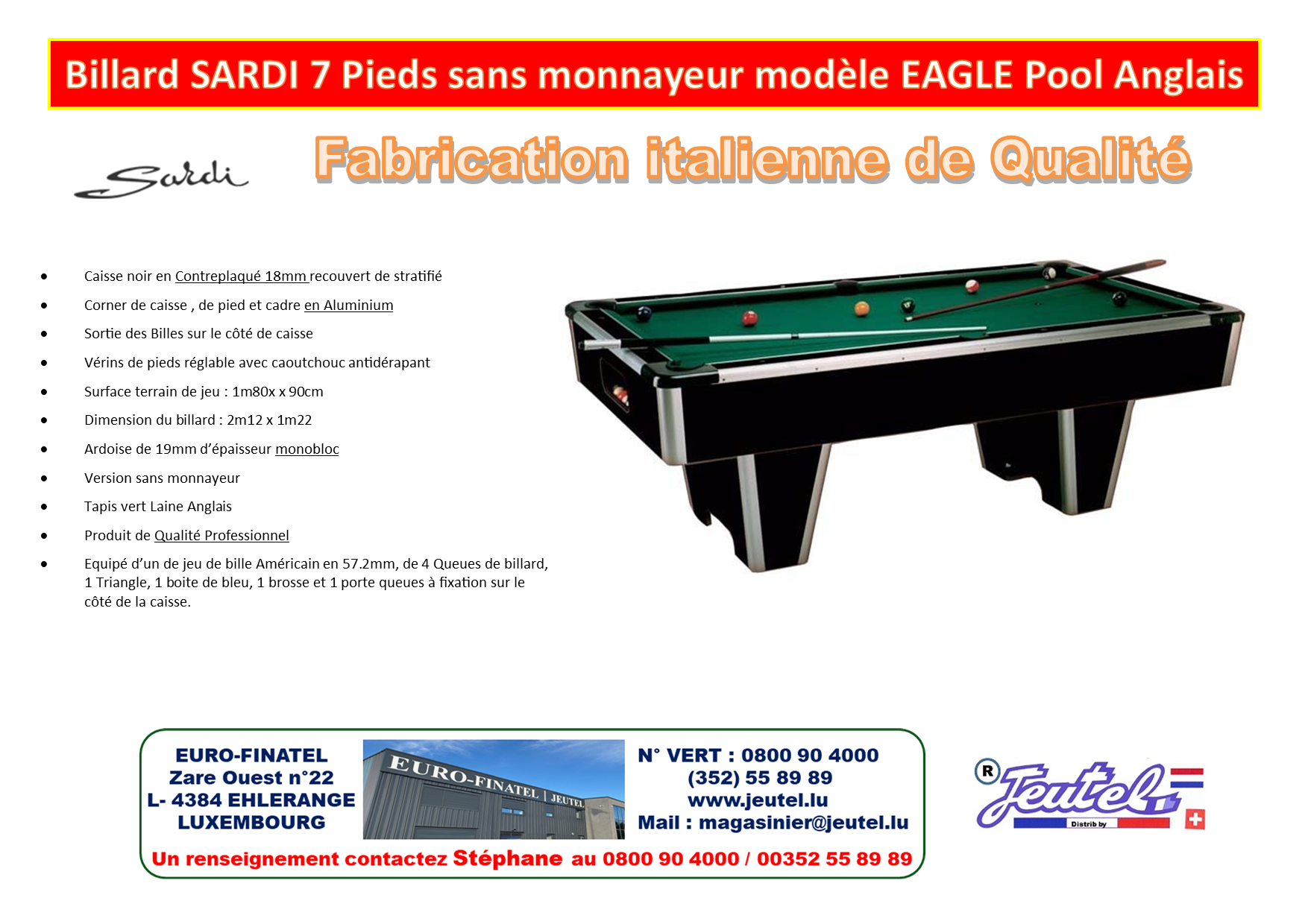 Soyez le premier à laisser votre avis sur “Billard SARDI sans monnayeur modèle EAGLE Pool Anglais 7 pieds”