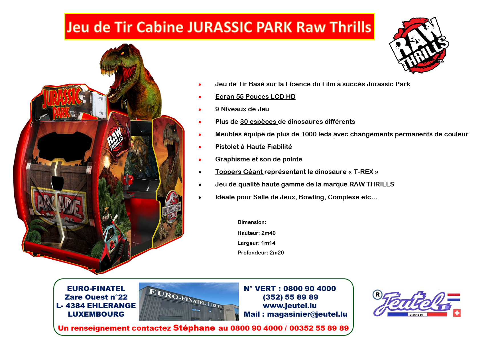 Soyez le premier à laisser votre avis sur “Jeu de Tir Cabine JURASSIC PARK Raw Thrills 2 Joueurs”
